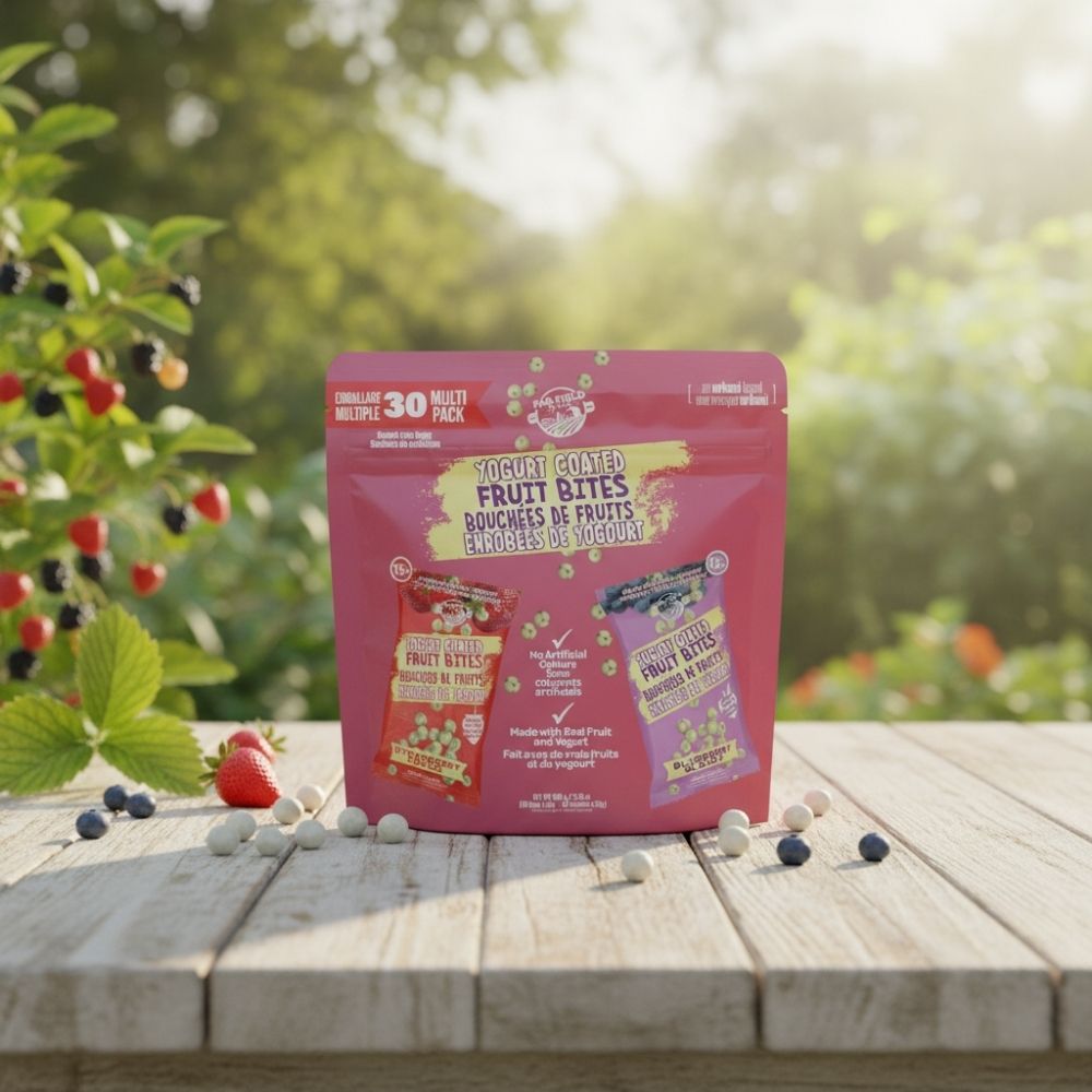 Bouchées de fruits enrobées de yogourt aux bleuets