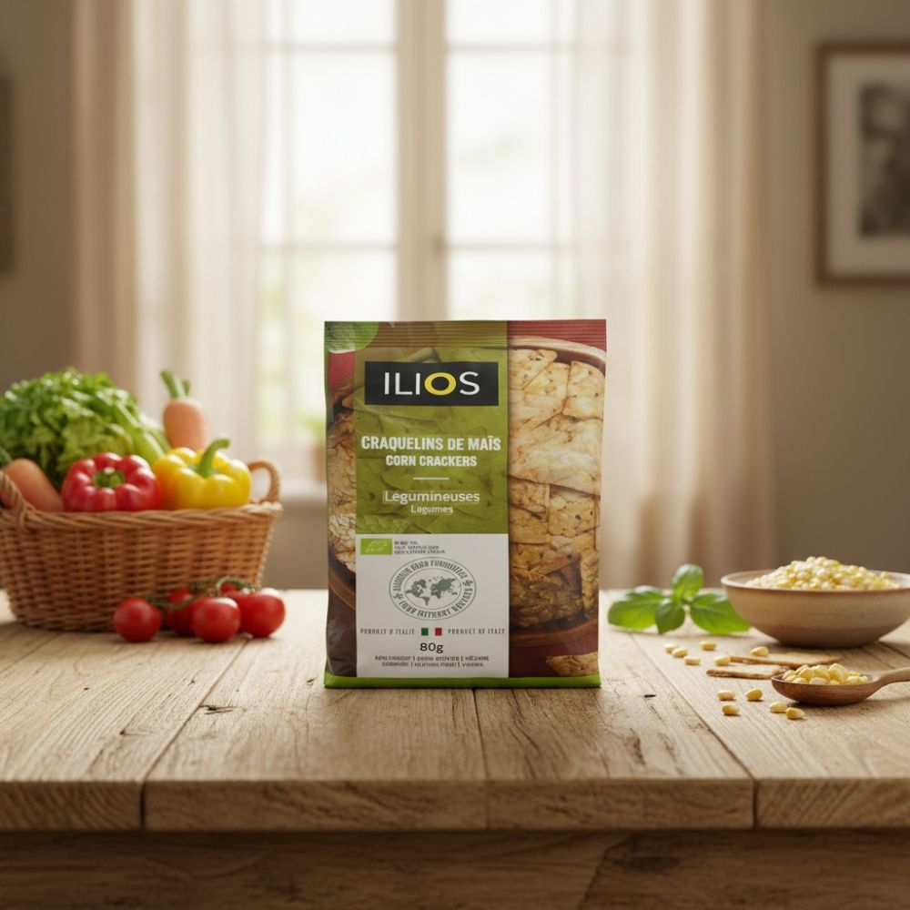 Les craquelins de maïs et de légumes Ilios sont des biscuits croustillants et savoureux, préparés à partir de maïs et d’un mélange de légumes finement intégrés. Parfaits pour les collations, à déguster seuls ou accompagnés de fromages et tartinades.